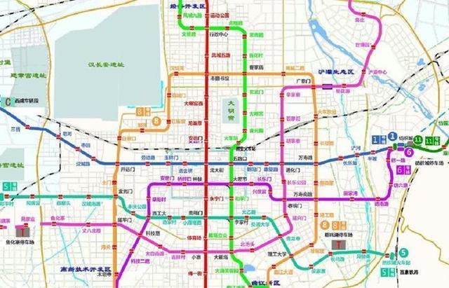 西安地铁8号线. 西安地铁2号线Xian Metro Line 2是中国陕西省西安市第一条建成运营的地铁线路于2006年9月29日开工建设一期工程北段北客站至会展中心站于2011年9月16日通车一期工程南段会展中心站至韦曲南站于2014年6月16日通车标志色为红色西安地铁2号线呈南北走向北起自未央区北客站. 西安地铁6号线二期工程起于一期工程终点西北工业大学站不含止于纺织城站线路全长约195公里均为地下线是西安地铁线网中东西方向的骨干线 6号线二期共设车站17座含换乘站7座目前全线已有12座车站主体结构封顶5座车站正在进行主体结构.